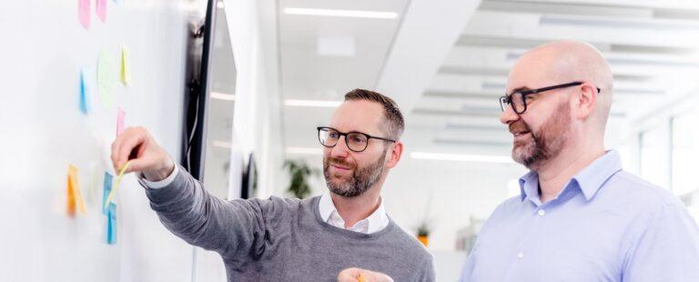 In zwei interaktiven Tagen erlebst du die Techniken des Design Thinkings anhand von praktischen Fallbeispielen. Unsere kompetenten und praxiserfahrenen Trainer stellen sicher, dass du die Methoden direkt in deinen Arbeitsalltag integrieren kannst. Du erlernst in der Design Thinking Schulung eine Methode, mit der du kollaboratives Arbeiten, Kommunikation und Projekttransparenz in deinem Team fördern kannst.